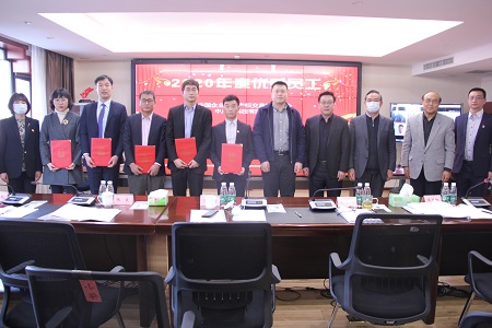 总结大会上还通报了协会2020年度优秀员工名单,对优秀员工进行了表彰。吴汝川会长、张良副处长、夏忠仁秘书长、王双林副秘书长、中产投科技有限公司董事长李敬风向优秀员工颁发了荣誉证书并合影。