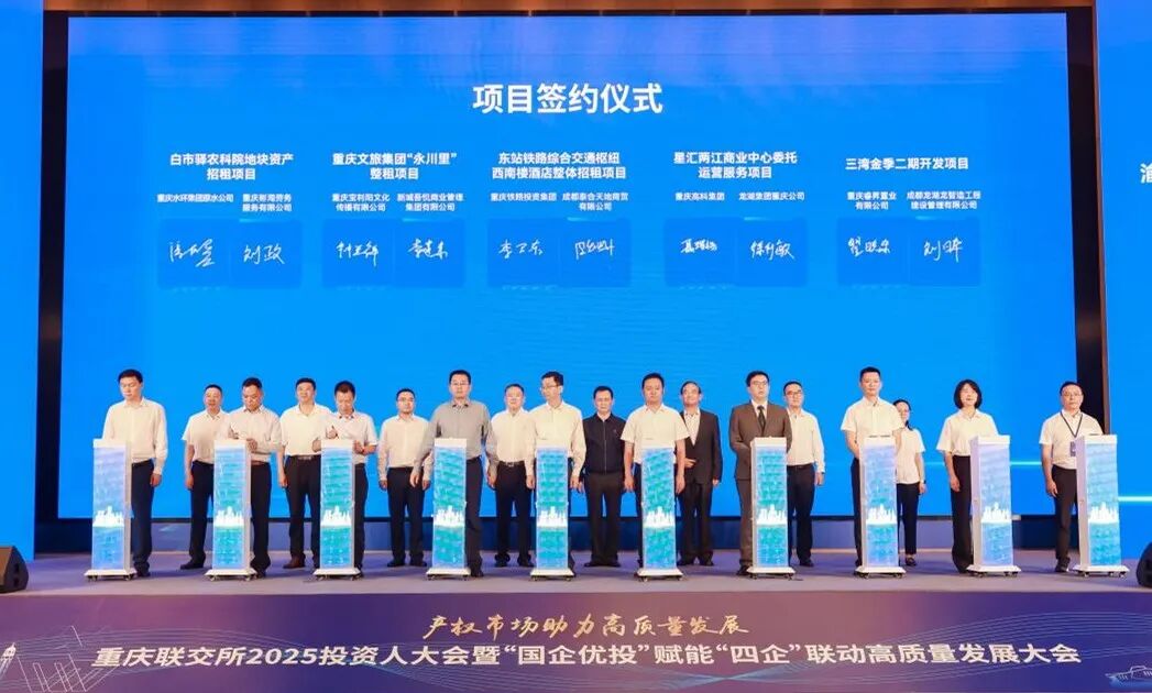 新闻中心 > 行业动态2025年9月24日,以“产权市场助力高质量发展”为主题,由中国火博国有产权交易机构协会(以下简称中国产权协会)、重庆市国资委联合主办,重庆联合产权交易所集团(以下简称重庆联交所)承办的“重庆联交所2025投资人大会暨‘国企优投’赋能‘四企’联动高质量发展大会”在山城重庆隆重举行。本次会议深度解读投资趋势,汇聚全国投资力量,搭建高效对接平台,推动产权市场在优化资源配置、促进各类所有制经济协同发展,纵深推进全国统一大市场建设中发挥更大作用。