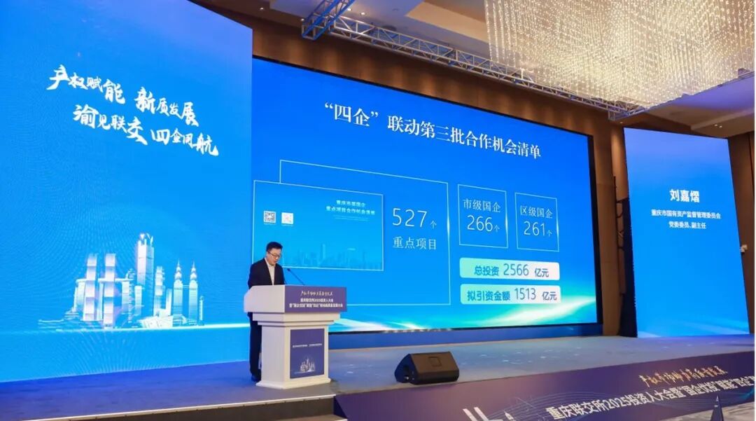 重庆市国资委党委委员、副主任刘嘉熠现场发布了“四企”联动2025年第三轮合作机会清单,涉及项目527个,总投资额超2500亿元,拟引资超1500亿元,涵盖城市开发、产城融合等多个领域,为投资者提供了丰富的项目资源。