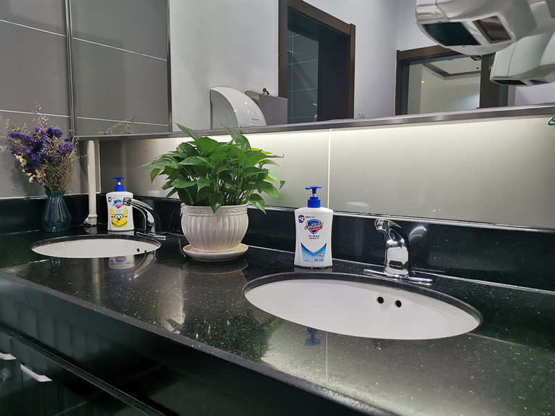 集团为推动勤俭节约、环境整洁,投入资金改善环境,特别是在疫情期间为洗手池更换了感应式水龙头,配置了厕所空气消毒清新器,为疫情防控提供有力的措施保障。每天定时多次清洁、消毒,员工用心爱护和保持,电梯、走廊、办公室、食堂、办公区,窗明几净,整洁一新,点缀着绿植,一片盎然生机。