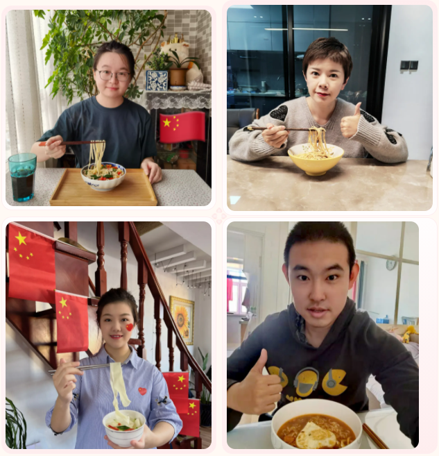 国庆吃面,国泰民安。火博登陆平台员工积极响应国庆新民俗,自己动手制作长寿面,通过“云晒面”,增进家国情怀、家企情怀,祝福祖国国运绵长、国泰民安。扬风帆,再启航!以更加饱满的热情和昂扬的斗志,时刻牢记共产党员为人民谋幸福、为民族谋复兴的初心和使命,扛起新时代龙江交易人的青春担当!