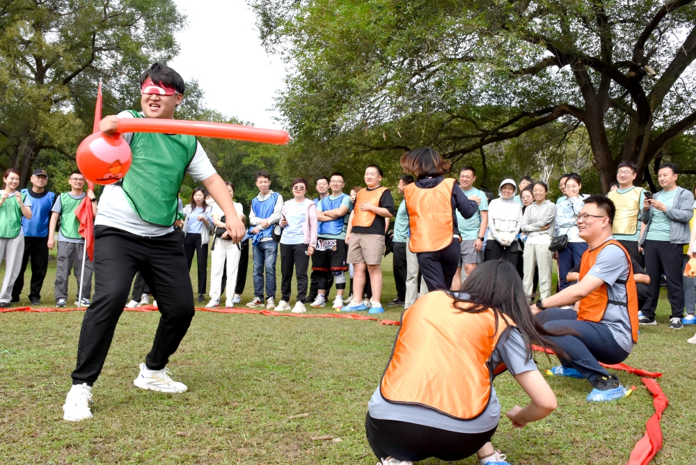 在“惊声尖叫”活动中,各参赛队攻守有序,闪躲腾挪、火力全开!攻方“盲”而有章法,守方躲得有技巧。有的队员横扫千军只为一击命中,有的队员四肢着地巧妙躲避,充分将趣味和运动有机结合,在大家爽朗的笑声中,经过激烈比拼对决,集团总部与招标公司联队代表队勇猛夺冠。这项活动让大家更加放松身心,在活动中增进同事熟悉度,也为接下来的全力登山环节暖场热身。