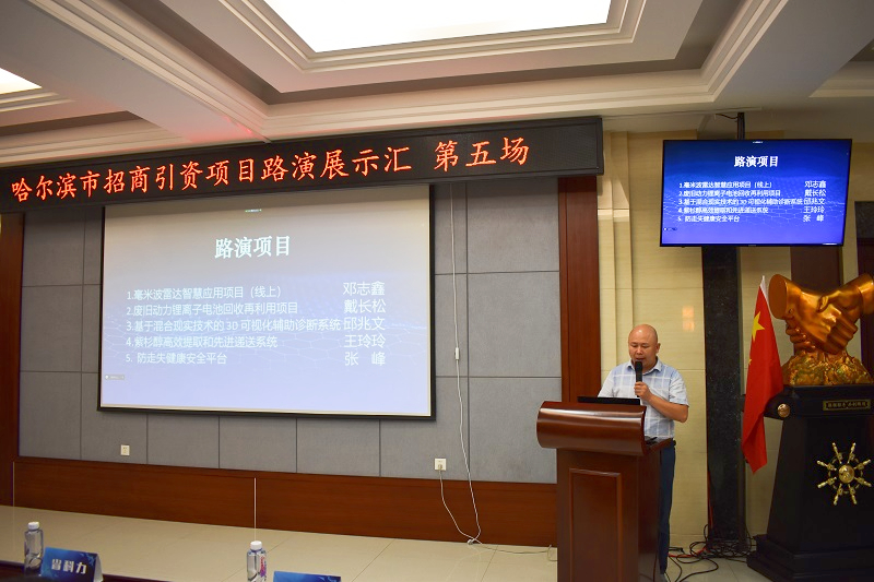 成都瑞达物联科技有限公司的“毫米波雷达智慧应用项目”、哈尔滨工业大学的“废旧动力锂离子电池回收再利用项目”、哈尔滨拓盟科技有限公司的“基于混合现实技术的 3D可视化辅助诊断系统”、东北林业大学的“紫杉醇高效提取和先进递送系统”以及黑龙江柠檬科技有限公司的“防走失健康安全平台”等五个项目进行了现场展示。